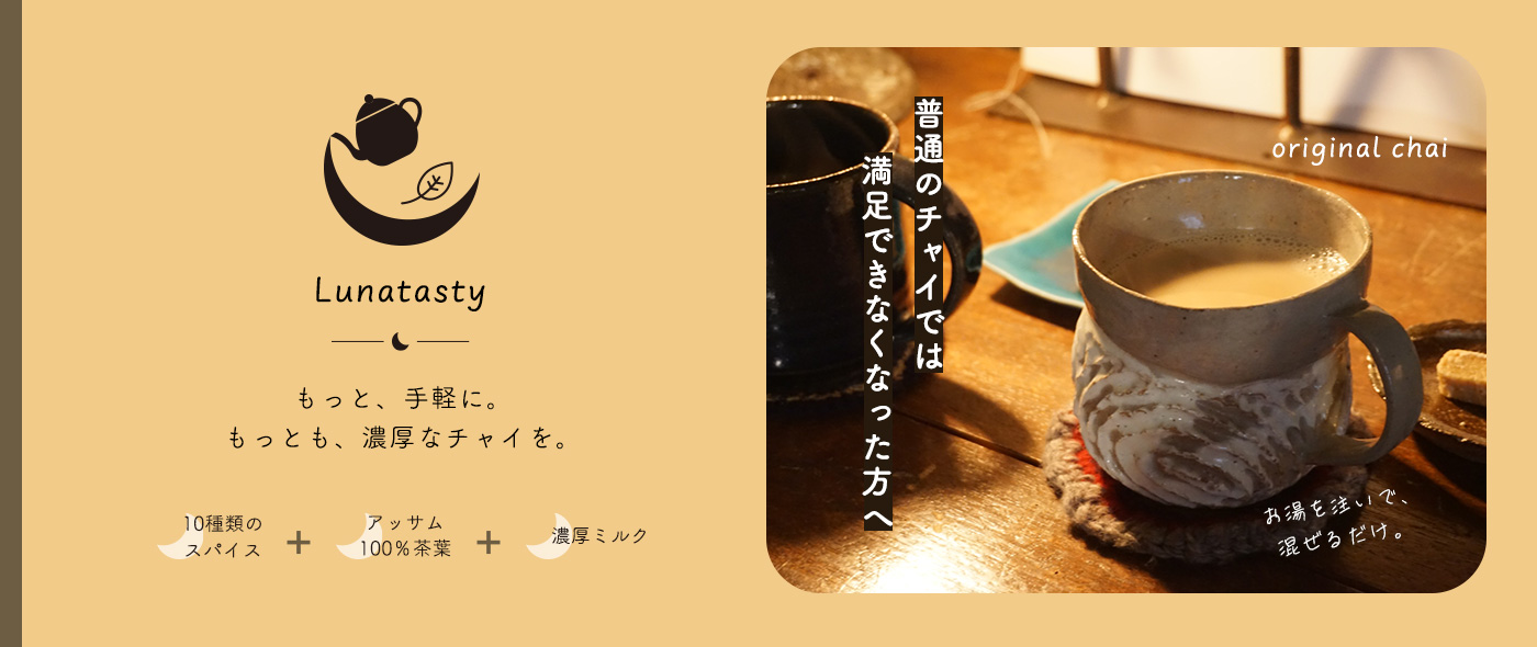ルナタスティはお湯だけで簡単に飲める濃厚チャイを皆様のお手元にお届けいたします♪