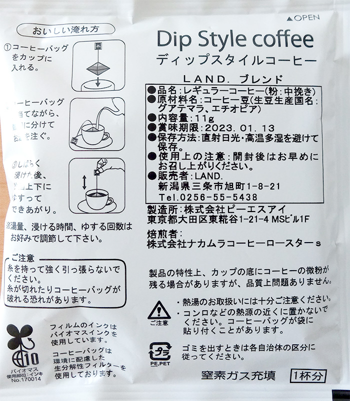 新潟県三条市にあるカフェ「LAND.」のオリジナルブレンドです。