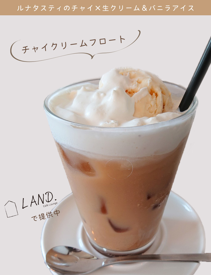 ルナタスティのオリジナルチャイ&ミルクティーと、カフェ「LAND.」オリジナルブレンドのスペシャルティコーヒーのセットです。