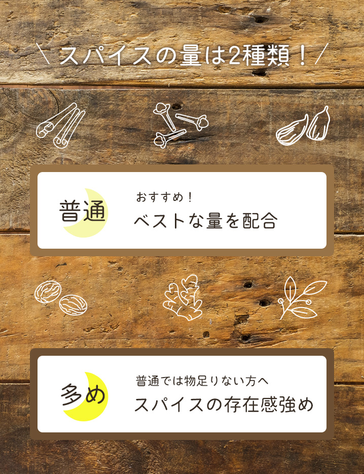 ●「標準」ベストだと思うスパイス量を配合しています。
