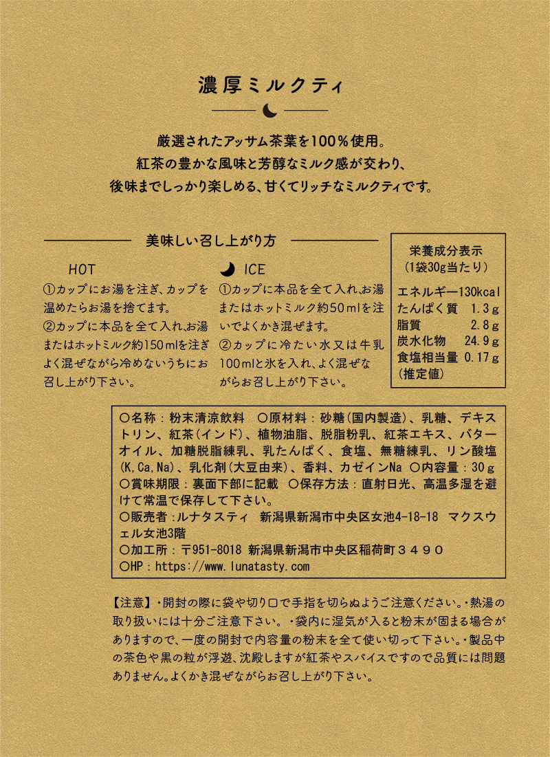 ルナタスティではミルクティも厳選したものを使用しています。